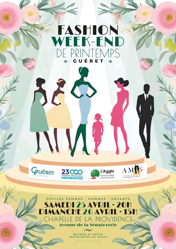 La seconde édition de la fashion week-end de printemps aura lieu à Guéret les samedi 25 et dimanche 26 avril 2026. Ce sont deux défilés de mode qui sont proposés grâce aux commerçants de l’association Vingt Trois Mille. Dans la chapelle de la Providence, avenue de la Sénatorerie, une quarantaine de mannequins vont défiler sous les feux des projecteurs et sur un grand tapis rouge dans une belle ambiance musicale pour mettre en valeur les produits de nos boutiques.
